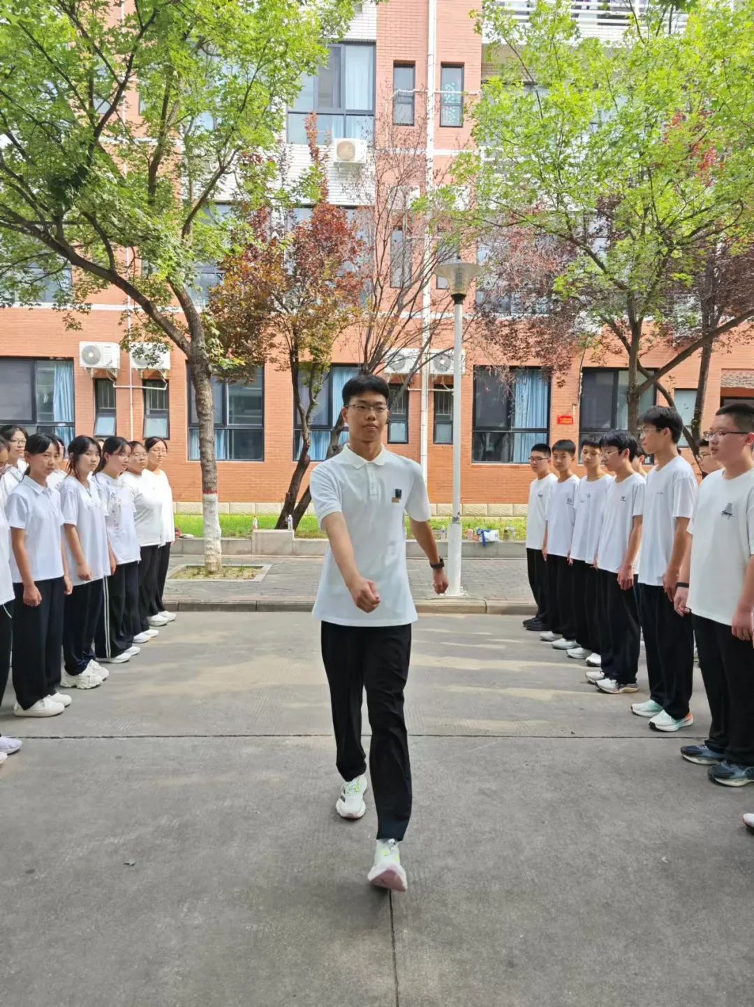 白衣少年整齐列队