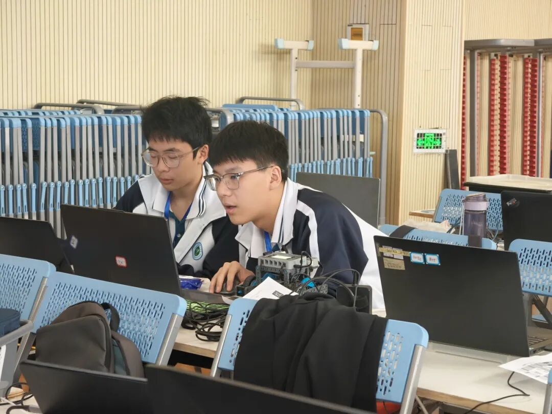 据了解,省赛现场,机器人社团的“老将”张丁艺、郑苏洋组队参与智能环卫工项目,依托多年参赛经验,精准完成分类投放任务;葛芃昊、周自熙挑战智能班车项目,严格遵循比赛规则,确保小车沿规定路线行驶,展现稳定发挥,延续了5届征战市赛、省赛的辉煌。