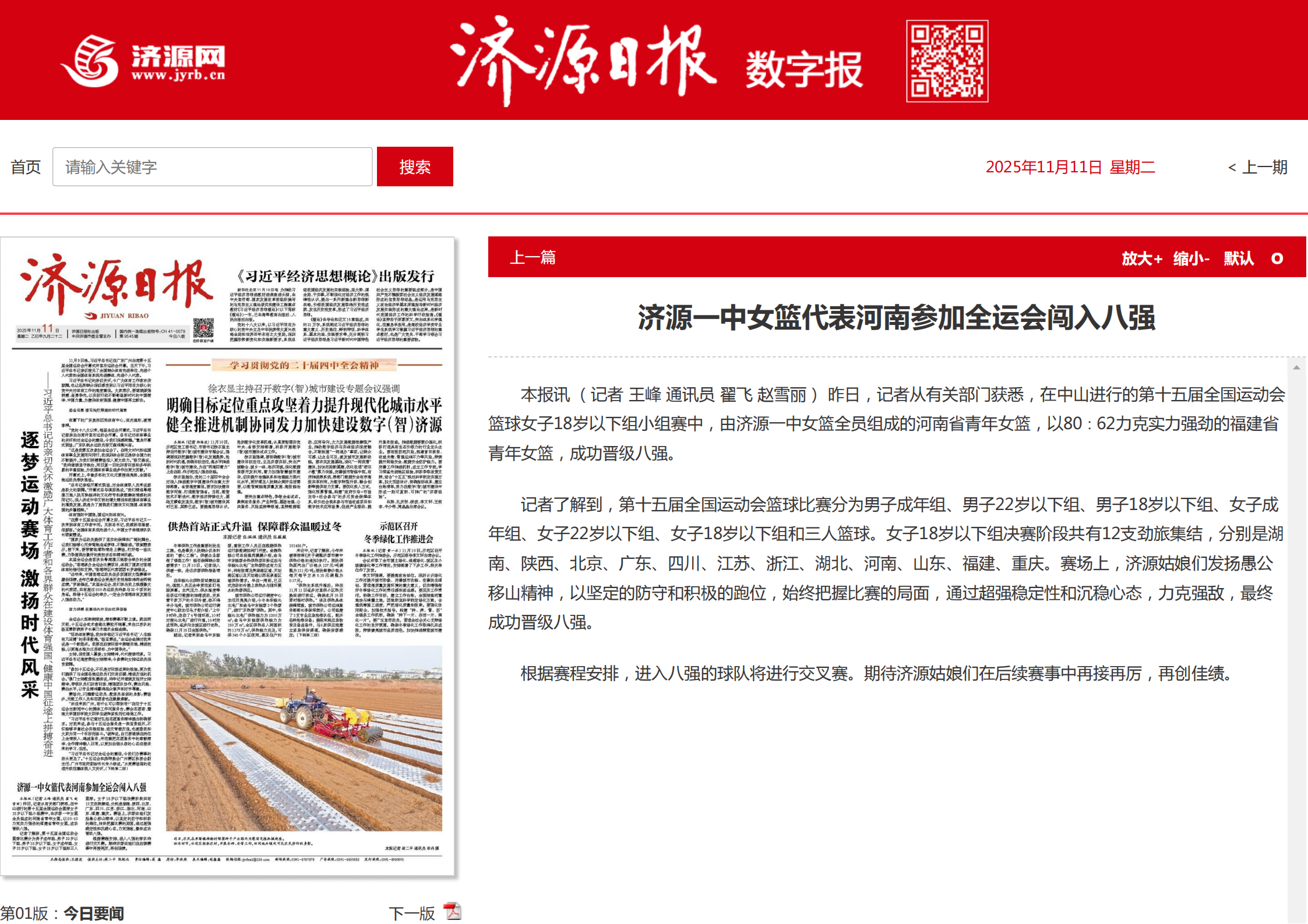 【济源日报】济源一中女篮代表河南参加全运会闯入八强 - 济源网